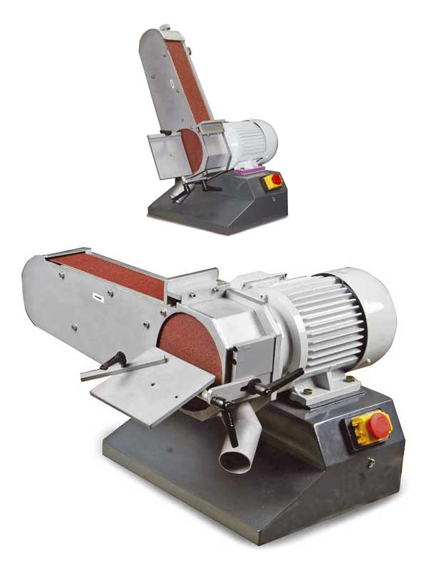 Univerzálně použitelná pásová a čelní kotoučová bruska s nastavitelným ramenem.