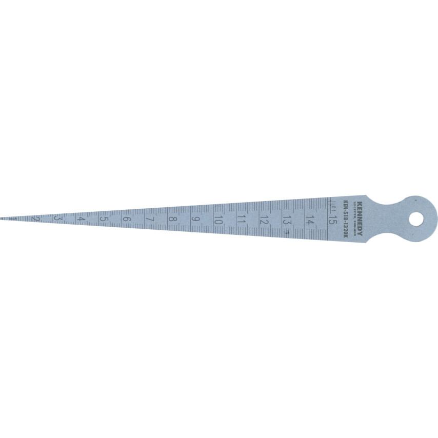 Kvůli svému tvaru se také nazývají kuželové měrky, neměří však kužely. Jsou vhodné pro rychlé a přesné kontroly vnitřních průměrů trubek, šířky drážek, rozměrů otvorů, obkročných měřidel apod. Jsou vyrobeny z temperované pružinové oceli. Krok měření 1 mm. Nerezová ocel. Platné pro 20°C. Antireflexní chromovaný povrch se saténovým odstínem. Stálobarevná černá čísla a dílky. vnitř. průměr1-15mm