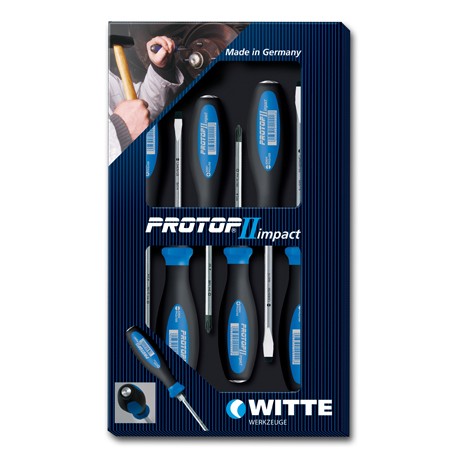 Sada šroubováků PROTOP II impact6-ti dílnáSložení: 0.6x3.5, 0.8x4.0, 1.0x5.5, 1.2x6.5, PH1, PH2Nová řada PROTOP II značky WITTE vylepšuje kvality osvědčených šroubováků řady PROTOP s využitím nejnovějších ergonomických poznatků. Úprava s úderovým bodem impact. Vhodná pro práci v extrémních podmínkách. Podrobnější informace ke zboží naleznete v katalogu PROTOP II v sekci "Katalogy"