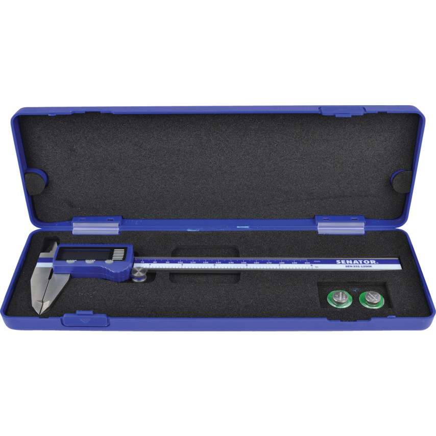 ro přesné měření vnitřních a vnějších rozměrů. Nastavení nuly. Převod mezi imperiální a metrickou soustavou. Dodáváme s plastovou kazetou. Rozlišení 0,01 mm/005'. Přesnost ±0,03 mm. Vyhovuje DIN 862.
