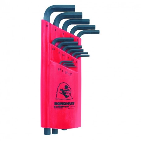 Sada imbusových klíčů bez kuličky.Rozměry:1,27mm, 1,5mm, 2mm, 2,5mm, 3mm, 3,5mm, 4mm, 4,5mm, 5mm, 5,5mm, 6mm, 7mm, 8mm, 9mm, 10mm. Klíče jsou vyrobeny z oceli Protanium, která je až o 20% pevnější než běžné druhy oceli. Sada je opatřena pouzdrem Bondhex. Každý klíč a pole sady je označeno rozměrem, což umožňuje rychlé, pevné a bezpečné uložení každého klíče. Klíče jsou v pouzdru uzamčeny pootočením, což brání jejich uvolnění. Pouzdro lze použít i při šroubování ke zvětšení páky.