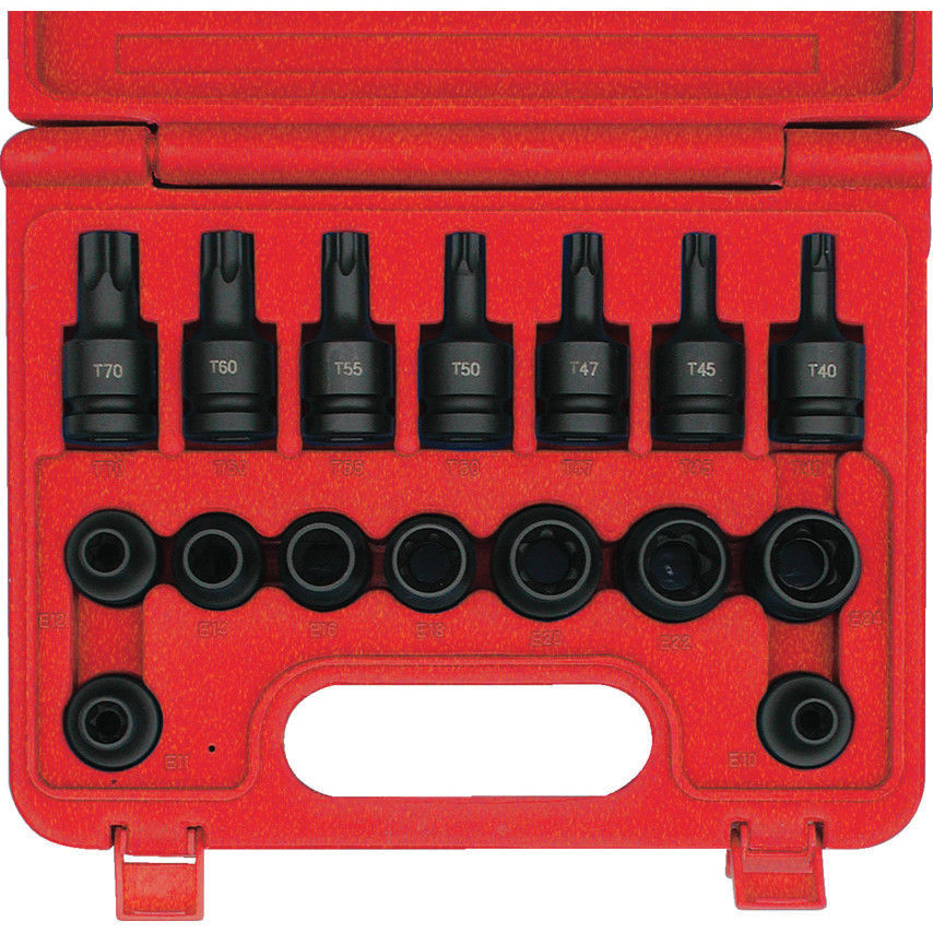 - Bit rázový 1/2" Torx o rozměrech: Hlavice E10, E11, E12, E14, E16, E18, E20, E22, E24 a o rozměrech unašeče: T40, T45, T47, T50, T55, T60, T70.