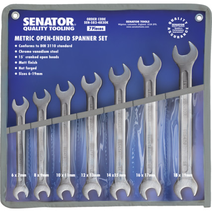 7-dílna sada otevřených stranových klíčů Cr-V
