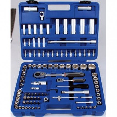 Sada nástrčných hlavic 1/4" 1/2" 5/16"- obsahuje 108 kusů nářadí metrického rozměru- 2 ráčny s rukojetí 1/4" + 1/2" - 6-ti hranné nástrčné hlavice 4 - 32 mm- 1/4" sadu bitů- obsahuje ráčnu se 72 zubyš x d x v: 402 x 315 x 82 mmváha: 7.000g