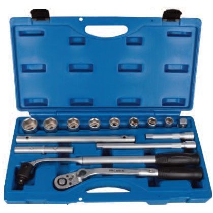 Sada nástrčných hlavic se silovou ráčnou 1/2"- 17 dílů v robustním plastovém kufříku- 6-ti hranné nástrčné hlavice 17-19-21-22-24-27-30-32 mm- silová ráčna 360° se 48 zuby a otočnou hlavou - silová ruční páka otočná, rukojeti 155 + 280 mm, prodloužení držadla 300 mm, prodloužení 125 + 250 mm, adaptér na prodloužení z 1/2" na 3/4"- pro extrémní použití, silová ráčna odolná do 720 Nm- ráčna a uvolňující páka s možností prodloužení až na 800 mm- silová ruční páka dokáže uvolnit i velmi silně utažené šrouby a matice- hlava ráčny otočná o 360°- středový čep silové páky je vyroben ze speciální oceli- ideální i do velmi těsných prostor- pevná rukojeť s protiskluzovou úpravou- ráčna i páka jsou tvarovány pro ideální úchop- kompaktní, nerozbitný kufřík