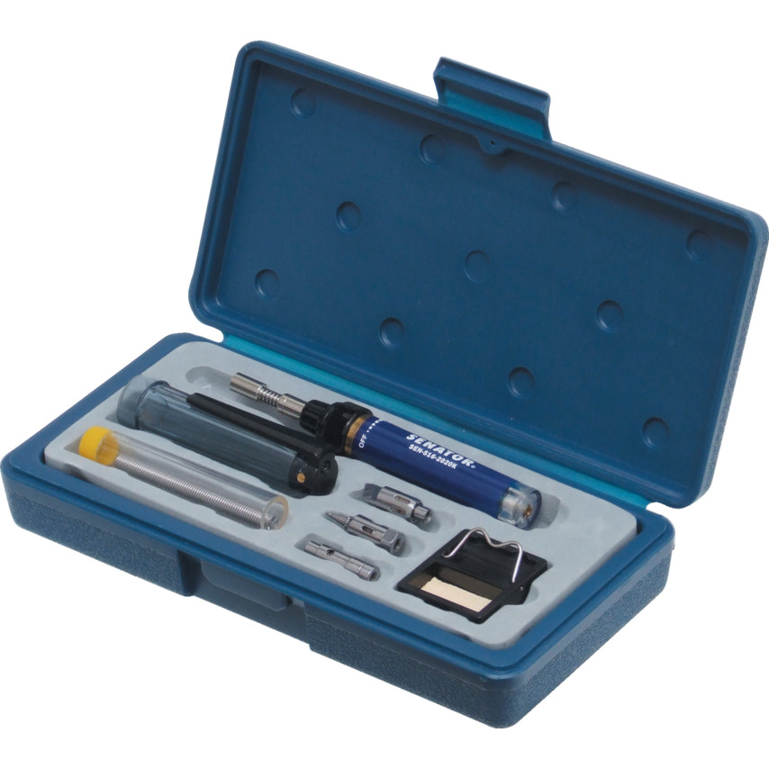 Propanbutanová pájka SENATOR sada 4v1. Tato sada představuje výborný poměr cena/výkon. Plynová svařovací sada obsahuje 2,4mm pájecí hrot, hrot pro horké řezání, hrot pro horký vzduch, ochraný kryt hrotu z klipsem. Hmotnost 467 g.